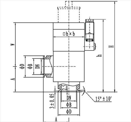 型号 | 通径(DN) | ΦD | ΦB | W | H | h | A | bxb |